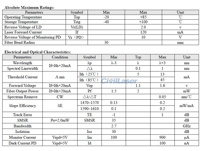 [Features] 1. Quantum well structure 2. Built-in semiconductor cooler 3. High stability