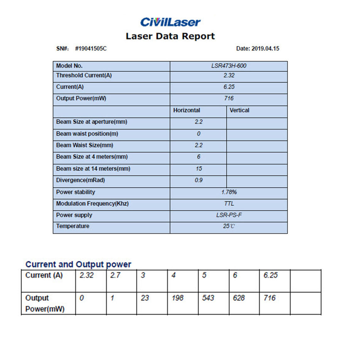 nombre del producto: 473nm 600mW Azul Láser DPSS con Fuente de Alimentación