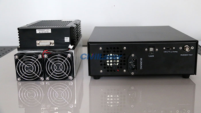 En esta ocasión vamos a mostrar un sistema láser de 808nm 45W con radiador. El cabezal láser con radiador, disipador de calor y 2 ventiladores de refrigeración. Este láser admite CW y modo de trabajo de modulación.