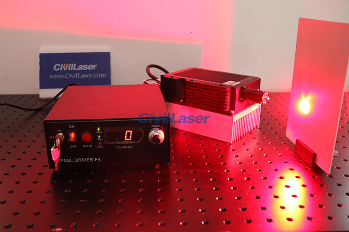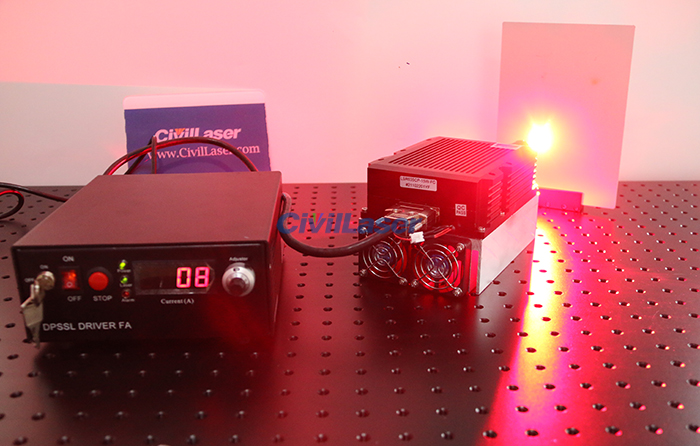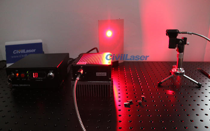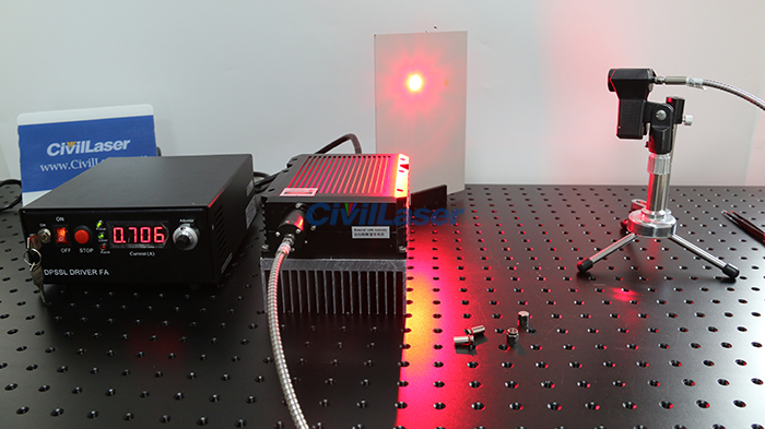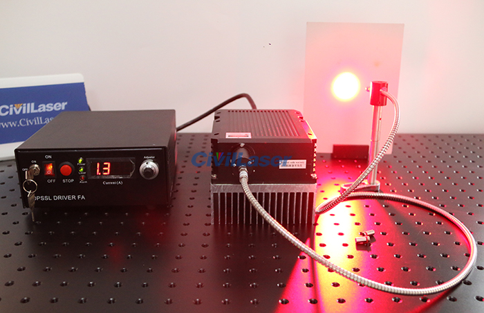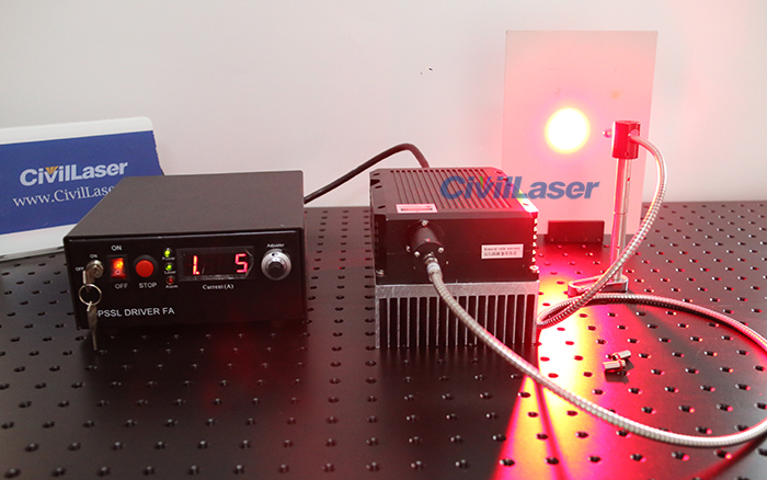 Es un sistema láser rojo de alta potencia de 635nm 15W. 15W es un láser de alta potencia, que genera mucho calor después de trabajar durante mucho tiempo. Hemos agregado una base de disipador de calor al cabezal láser. El disipador de calor inferior tiene 2 ventiladores de refrigeración. Este es un láser de fibra acoplada. La fibra de 400 μm se puede conectar y está equipada con un colimador en el extremo de salida de la fibra. Comprobémoslo ahora.