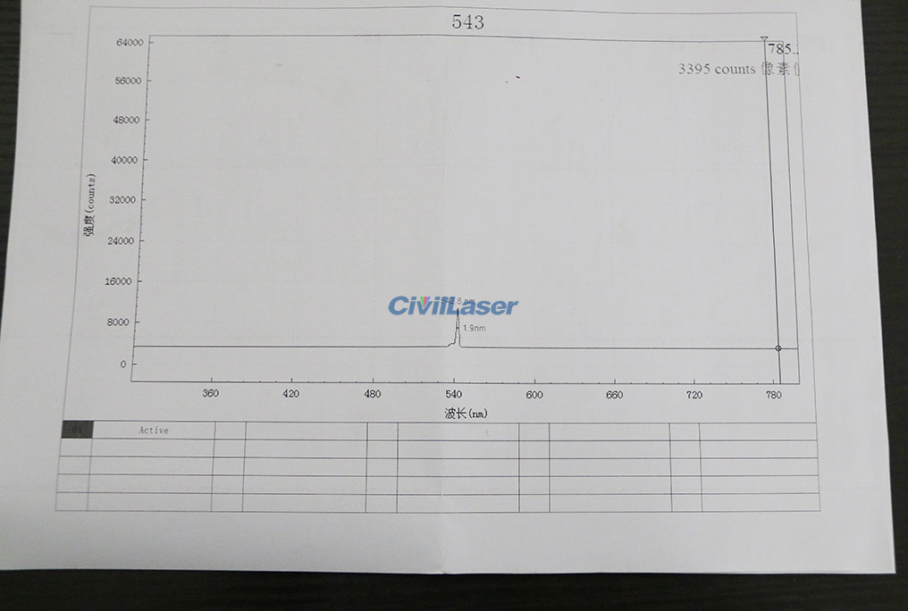 La longitud de onda central es 542,8 nm. Y su mancha es perfectamente redonda, es modo TEM00.
